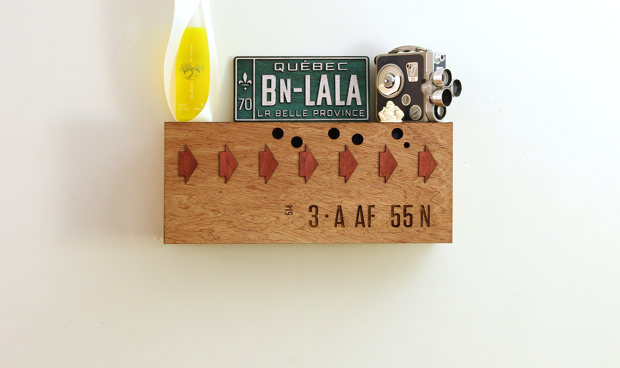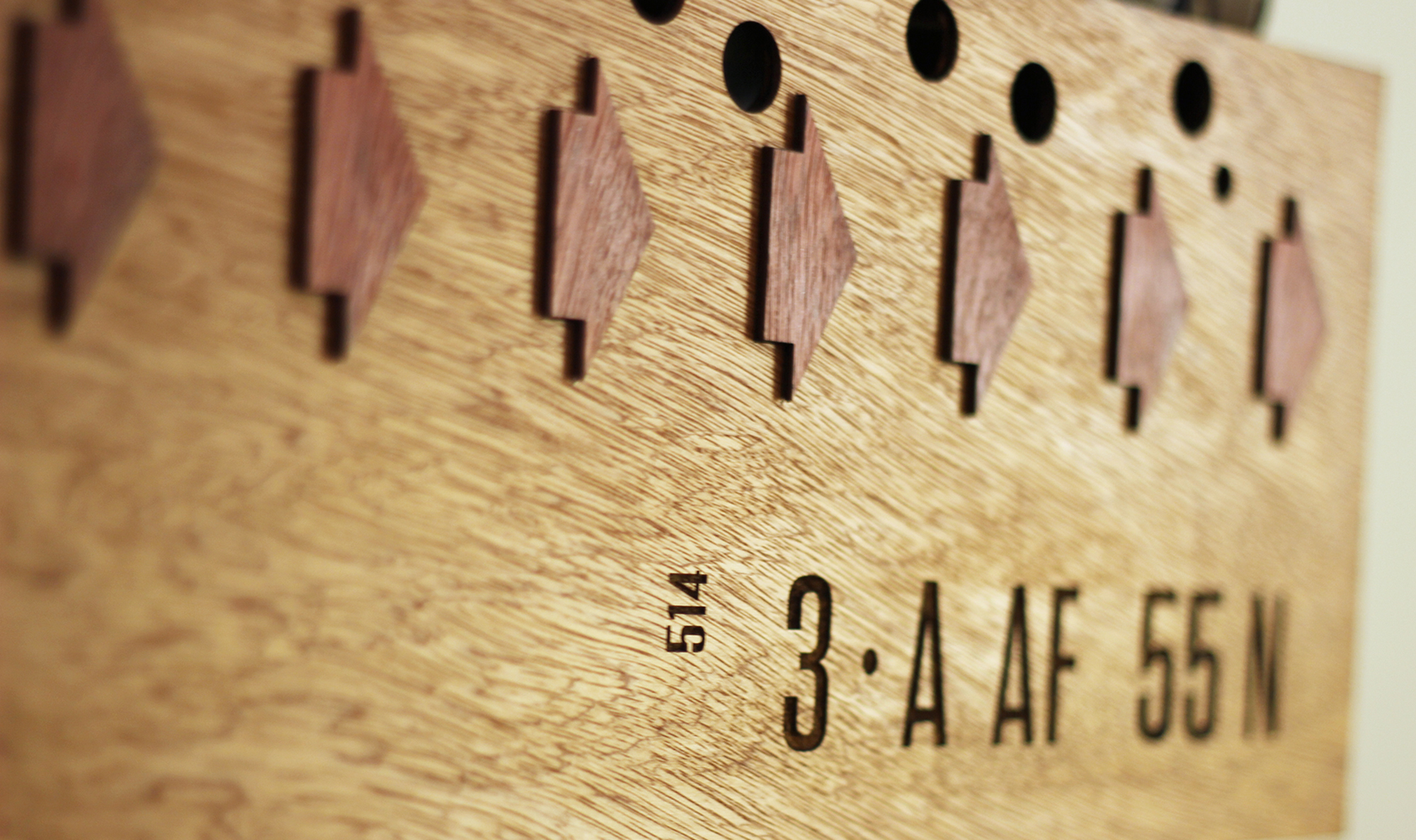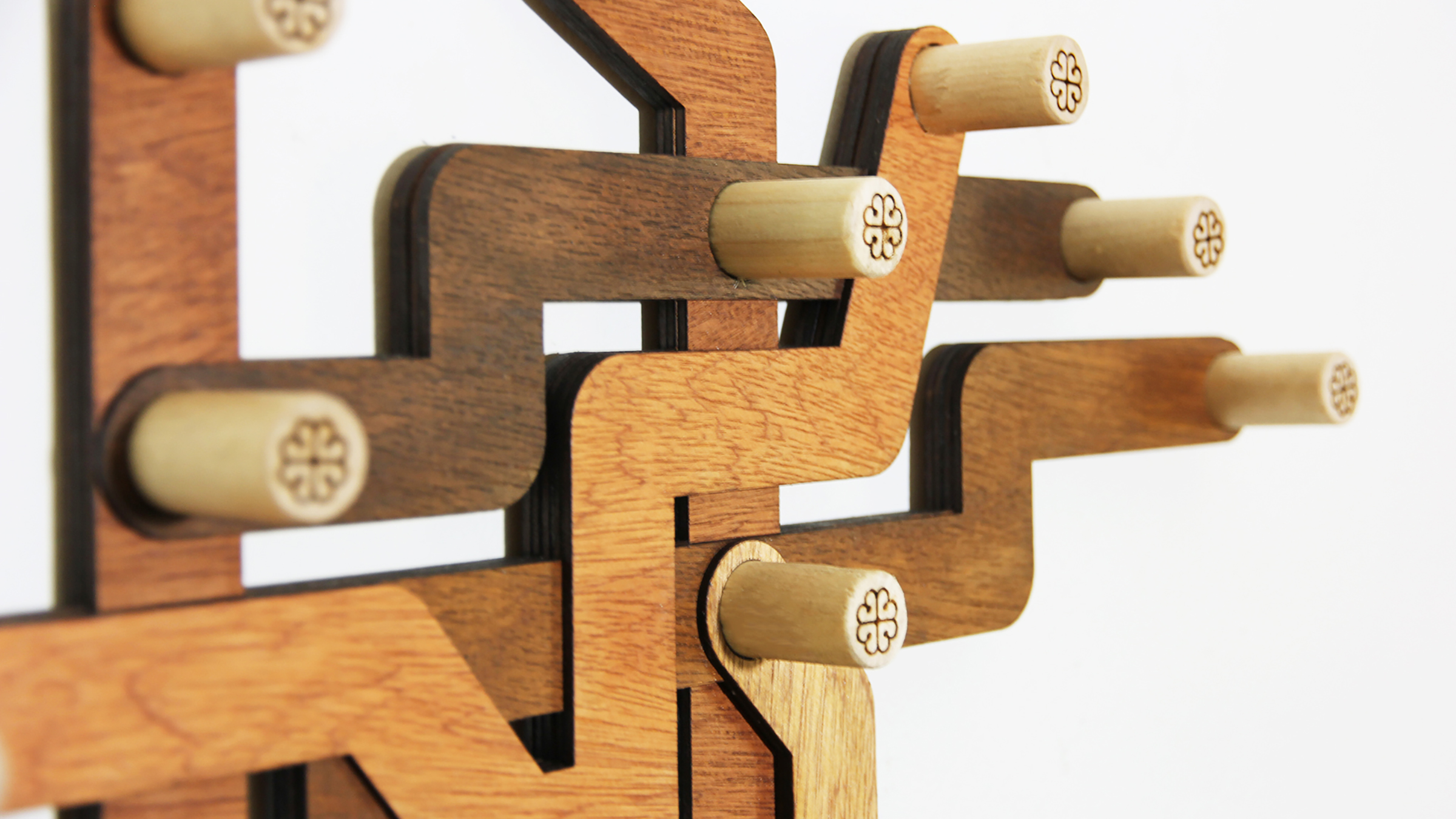 Coat Hanger Wall Wood. Full view. A fun and practical coat rack of the Montreal metro network. White background. omeech